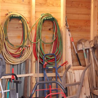 Die vielen Fahrräder der Bewohner müssen mitsamt Anhängern und anderen Zusatzausstattungen geschützt untergebracht werden. Hierzu dienen spezielle Fahrradschuppen, die für diesen Zweck errichtet wurden. Außerdem gibt es eine Werkstatt und einen Schuppen für Gartengeräte.